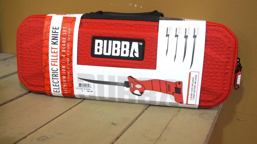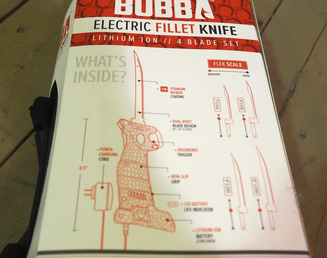 Electric fillet knife; lithium ion, 4 blade set: 7″ E-Flex, 9″ E-Flex, 9″ E-Stiff, 12″ E-Stiff