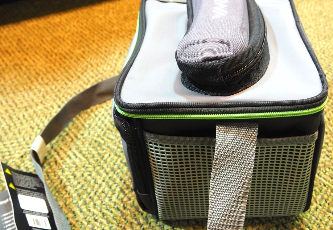 The 360 Vinyl Tackle Box is ideal for short trips. The tackle box holds two 360 Daiwa boxes for ample selection of tackle. It is constructed from a vinyl material that is attractive yet rugged and resists water. The new fresh look with the Daiwa logo is both eye catching and a standout. A handy sunglasses holder keeps your glasses protected and handy. Sewn stow strap allows for attaching additional gear. Roomy front pocket provides additional storage. Clear under-lid pouch holds hooks and leaders. The new 360 Vinyl Tackle Box is a value priced, smart, functional soft tackle box ideally suited for your shorter fishing excursions.