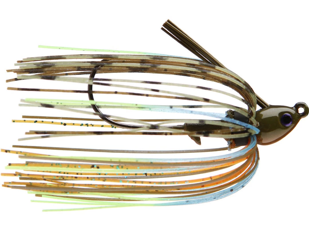 The Dirty Jigs Finesse Swim Jig is a Northern-style swim jig with a 50-strand half-cut skirt for a small and slender profile designed to perfectly match that of a small baitfish. Its bullet head also allows for better movement through vegetation and its 3D eyes provide added realism. Available in a variety of proven colors, a razor sharp VMC Hook seals the deal for the Dirty Jigs Finesse Swim Jig.