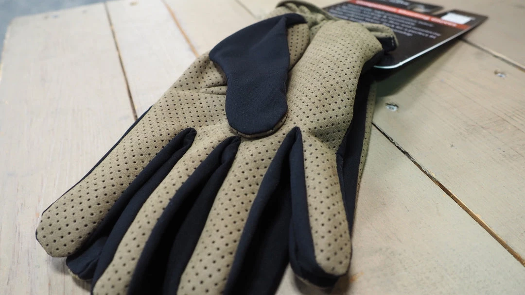 Perforated palm for air flow and sensitivity.